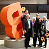 Den nye, felles logoen, som er bokstaven B - ble i april avduket av ordføreren i Askim. B-en er støpt i betong, er 2,5 meter høy, veier fem tonn og skal vandre rundt i fylket.