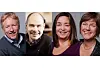 Får nye NRK-jobber: Fra v: Kai Aage Pedersen (Vest), Anders Opdahl (Nord), Heidi Pleym (Sør) og Sigrid Gjellan (Midt), blir nye regionredaktører i NRK. Den femte - i region Øst - blir klar senere. Foto: Ole Kaland/Yngve Olsen Sæbbe/ NRK.