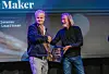 Mestvinnende kreatør: Syver Lauritzen hentet flere priser på Gullhaien 2025. Her får han overrakt en pris av juryleder Ivar Vereide. Foto: Nicolai Solbakk Willumsen