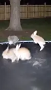 sommer bråstoppet av en gjeng kaniner på en trampoline. Fanget med et