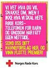 Det blir også benyttet støtteannonser i papirutgavene til Dagbladet og Aftenpostens Si; D. Det er også hengt opp plakater på skoler og distribuert kort på ulike steder hvor barn og ungdom møtes.