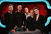 Skråblikk på 2014: Thomas Giertsen, Bård Tufte Johansen, Harald Eia, Else Kåss Furuseth og Pernille Sørensen i første program av «Årsrevyen» med Harald Eia. Foto: TVNorge.