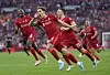 Populære: Liverpool trakk mange norske TV-seere til skjermen. Klubben har en stor norsk fanskare. Her feirer Kostas Tsimikas etter å ha scoret på det avgjørende straffesparket. Foto: (AP Photo/Kirsty Wigglesworth)