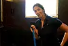 Etter møkking, skal hesten strigles, og vi går for å hente Lulu, som står ute og beiter. Hanne geleider hesten opp i stallen, mens hun småprater med sin og de andre hestene.