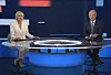 Generalprøve: Nina Owing og Petter Oulie-Hauge under generalprøven i det nye Dagsrevyen-studioet. Foto: NRK