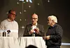 Opp til NRK: Leder for Oslo Arbeiderparti, Frode Jacobsen (til venstre), er positiv til forslaget om å plassere NRK på fengselstomta, men understreker at det er opp til NRK å avgjøre hvor de vil være. Her er han på folkemøtet med kringkastingssjef Thor Gjermund Eriksen (i midten) og NRK-korrespondent Tomm Kristiansen. Foto: Eivor Eriksen