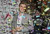 Sjeldent smil: Magnus Carlsen ble mottatt med konfetti etter at han hadde forsvart sin VM-tittel i onsdagens omspill mot Fabiano Caruana Foto: Terje Bendiksby/NTB Scanpix