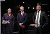 Kjemper om makten: De tre statsministerkandidatene Erna Solbeg (H), Jonas Gahr Støre (Ap) og Trygve Slagsvold Vedum (Sp) kjemper alle om regjeringsmakt. En ny undersøkelse fra Medietilsynet kan tyde på at det er unge velgere å hente på sosiale medier. Her de tre under en debatt på TV 2 i Arendal. Foto: NTB.