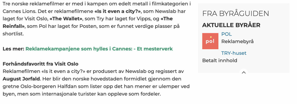 If you publish content regularly in the Agency Guide, your article is more likely to appear on the front page of Kampanje.com.
