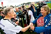 Takk for kampen: Partilederne Jonas Gahr Støre (Ap) og Erna Solberg (H) etter kjendiskampen i fotball under Norway Cup 2017 på Ekebergsletta i Oslo onsdag. Solbergs lag vant og det gjør hun også på sosiale medier viser en fersk analyse Kampanje i dag kan rapportere. Foto: NTB scanpix