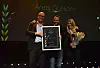 PR-vinnere: Kjetil Try, Sindre Beyer og Erikha Harket i Try tok imot prisen for Årets Gullkorn på Latter. Foto: Dag Robert Jerijervi.