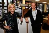Deler ut priser: Hos Geelmuyden Kiese (GK) avslører daglig leder Nina Riibe (til v) og gründer og konsernsjef Hans Geelmuyden hvem som har vunnet årets tåkepriser. Her poserer de to foran en japansk tåkelur. Foto: Eivor Eriksen
