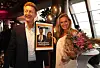 Børs og katedral: Også Kampanje-redaktør Knut Kristian Hauger og kommersiell leder Nina Gade Tenvik jobber og bor sammen. Her med en forside gitt av Hegnar Media i anledning 60-årsfeiringen. Foto: Eivor Eriksen.