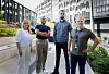 Stolt av nytt Telia-fond: Camilla Forberg sier hun er stolt over å ha lansert Telias nye Utfordrerfond. Her sammen med kollega Audun Bryn og de første støttemottagerne, Mudassar Mehmood og Ismail Bashir. Foto: Eivor Eriksen.