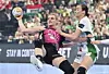 Tøffe tak: Under håndballkamper blir det ofte tøffe nærdueller. Skal man se nærdueller i Champions League i år må imidlertid nordmenn bla opp for abonnement på en egen strømmetjeneste. Ingen norske mediehus har kjøpt rettighetene til turneringen som huser norske Kolstad og Vipers. Foto: Tibor Illyes/MTI via AP