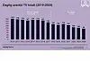 Ser en på TV-seingen isolert er det et fall på nye syv minutter til 96 minutter i 2024. Det er første gang TV-seingen faller til under 100 minutter. Men i målgruppen 10-19 år er det i det minste vekst igjen.