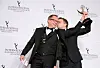 Ny dramasjef: Produsent Vegard Stenberg Eriksen skal lede nye Miso Film Norge. Her er han sammen med sin bror, Gjermund Stenberg Eriksen, da de vant Emmy for dramaserien Mammon 2. Foto: Reuters.