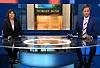 Blir sittende: Etter snart ti år stående kan nyhetsankerne endelig få sitte når «Dagsrevyen» går på lufta. Her programlederne Ingvild Bryn og Tom Nilssen fra en av sendingene denne uka. Foto: Skjermdump: