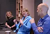 Lytter til markedet: Heidi Thomassen (til venstre) i Bauer Media, Benedikte Solstad fra NRK og Kristoffer Vangen i Bauer Media følger nøye med på utviklingen i podkastmarkedet. Nå kan de fastslå at lyttingen vokser for første gang på flere år. Foto: Eivor Eriksen