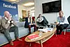 Skal bli enda fler i år: Facebook har fortsatt god plass i kontorene sine på Barcode etter ansettelsene av Nina Hareide-Larsen (t.h.) og Kristina Braarvig. Her sammen med norgessjef Rune Paulseth (t.v.) og nordisk kommunikasjonssjef Peter Münster (bak). Foto: Eivor Eriksen.