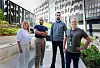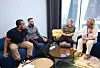 Nytt samarbeid: Ismail Bashir og Mudassar Mehmood hadde tatt turen fra Mortensrud til Telia på Økern for å snakke om Mortensrud Fellesskap og det nye utfordrerforndet til sponsoransvarlig Audun Bryn og markedsdirektør Camilla Forberg. Foto: Eivor Eriksen.