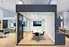 Møterom i glass: Midt i det store rommet er det bygget en glassboks som rommer et møterom. Foto: HK