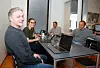 - Ambisiøse gründere: - Det er sjelden vi finner så ambisiøse gründere, sier Hilde Støle Pettersen i Momentum. Her sammen med Jo Hansæl, Frank Mohn (delvis skjult), Dag Honningsvåg og Petter Raaum. Foto: Eivor Eriksen.